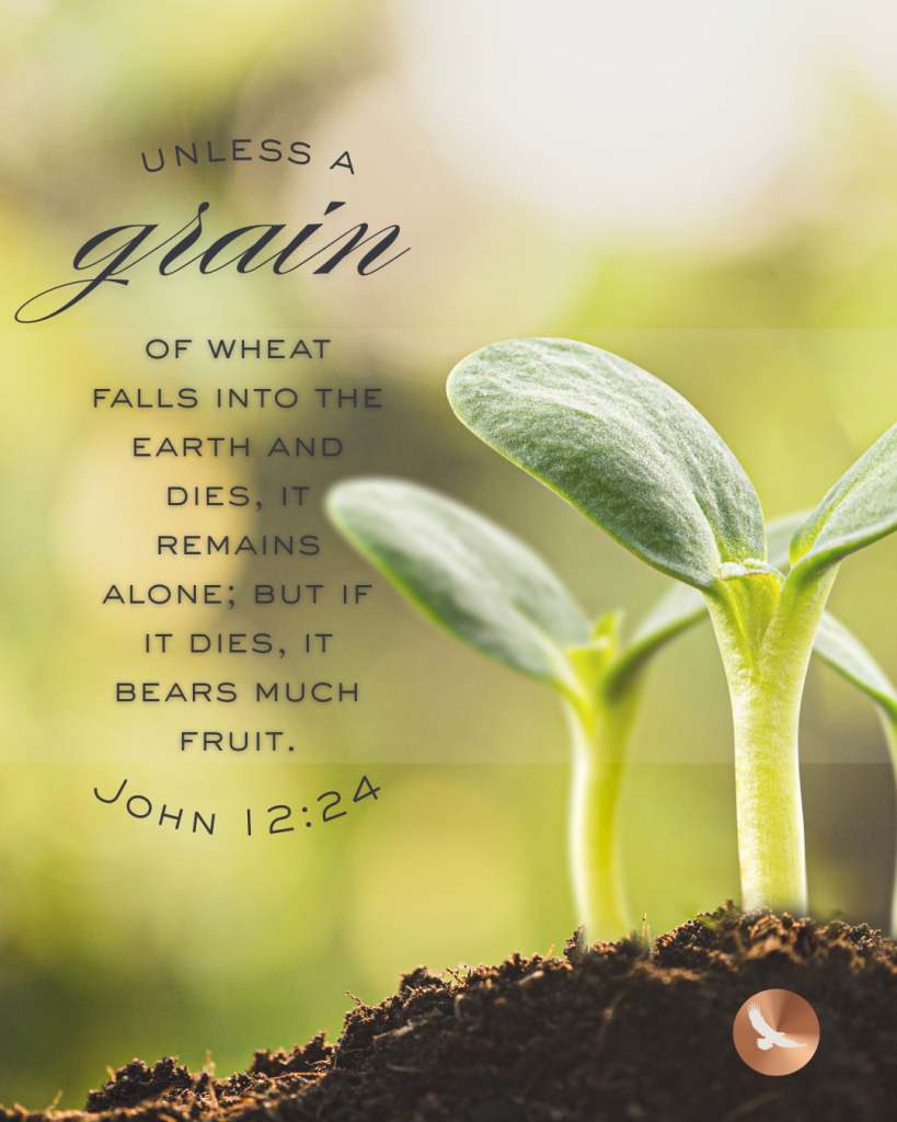 “Unless a grain of wheat falls into the earth and dies, it remains alone; but if it dies, it bears much fruit.”